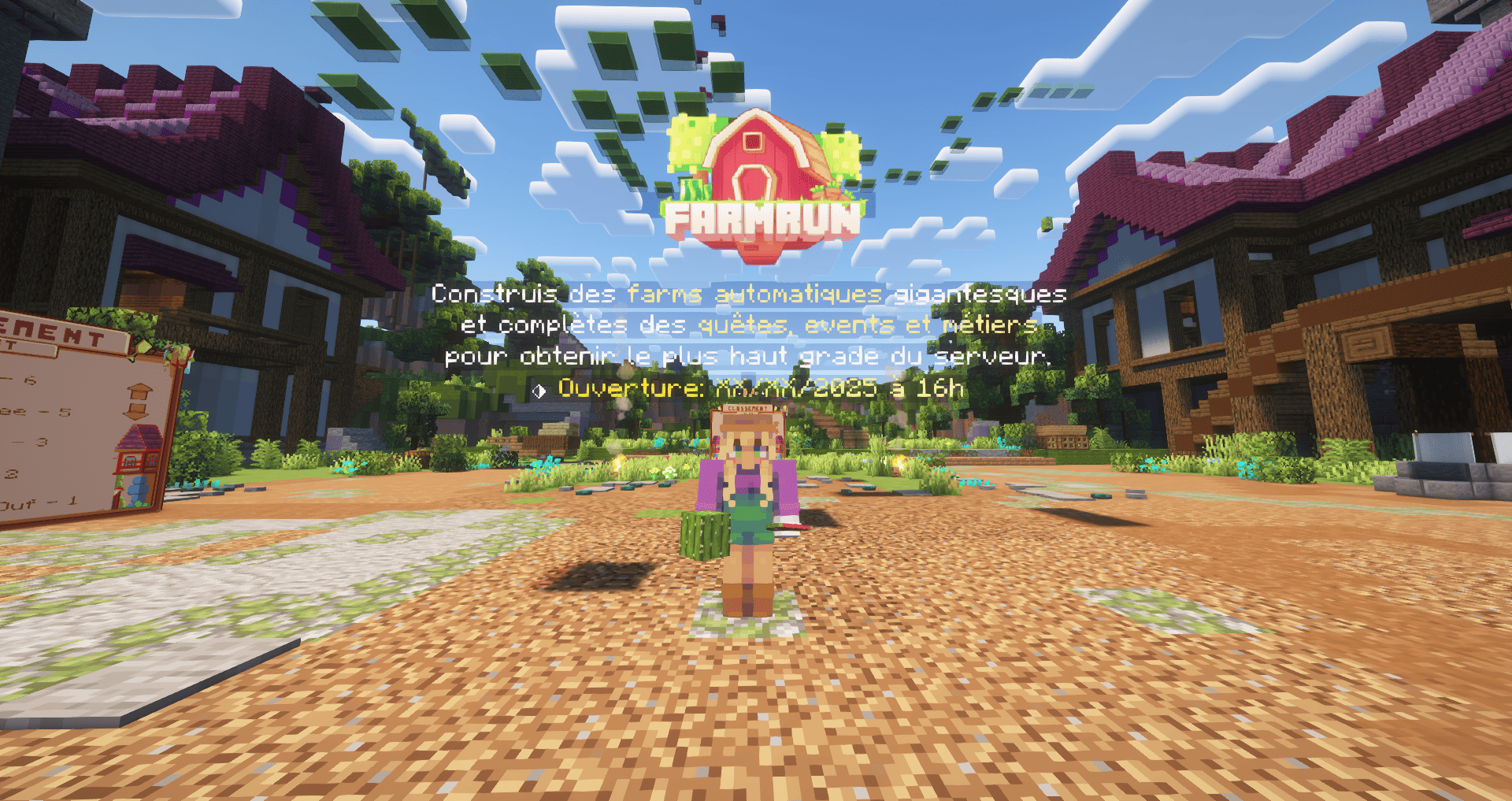 Une fois arrivé dans le mode FarmRun, ton aventure commence vraiment. Tu seras placé sur un plot (ton espace de jeu personnel), et ton but sera de construire des farms automatiques pour générer de l’argent.