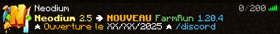 C’est tout ce qu’il te faut pour rejoindre l’univers de Neodium. Prépare-toi à farmer, construire et devenir une légende du FarmRun. 💪